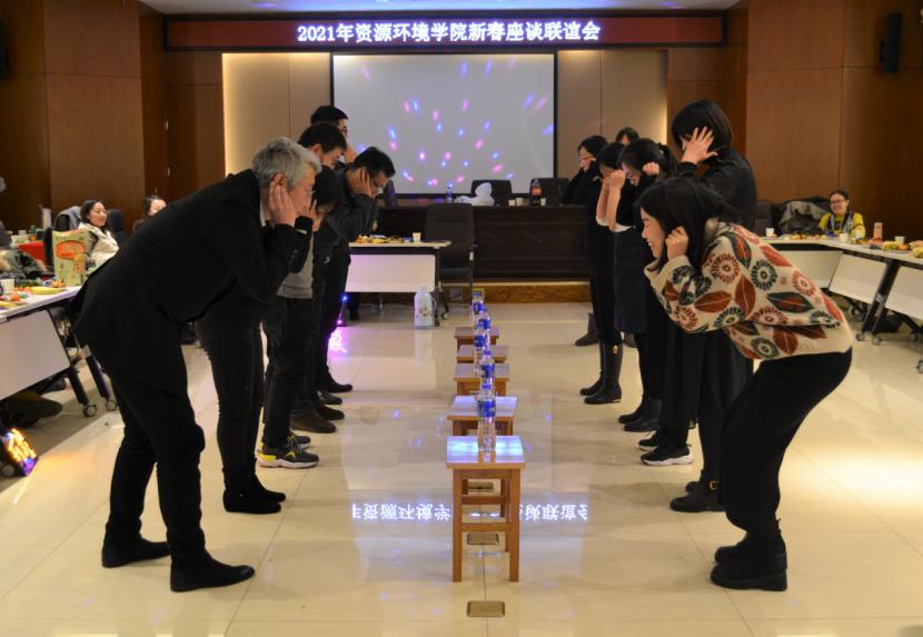 在繁忙的期末工作之余,师生们精心准备、编排了精彩纷呈的节目。舞蹈《X-X》、相声《云旅游》及军体拳表演,展现了大学生的昂扬的精神风貌,给老师们送来了温暖的新年祝福。刘建红老师演唱的《中国人》,展现出了中国精神、中国力量、中国担当,激励大家携手共创辉煌。院领导班子带来的深情诗朗诵《新年好,资环人!》,展现了资环人的情怀和力量,激励资环人携手开拓创新、奋斗进取。联欢会在精彩的节目中还穿插了趣味游戏环节,极大地调动了老师们的热情,提升了联欢会的趣味性和参与度。