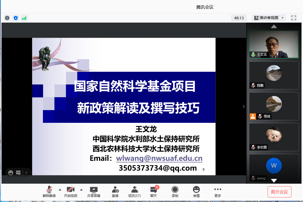 和太原师范学院科研处邀请,中国科学院水利部水土保持研究所王文龙研究员线上作了题为《国家自然科学基金政策新变化解读与撰写技巧》的辅导报告。我校汤姆视频