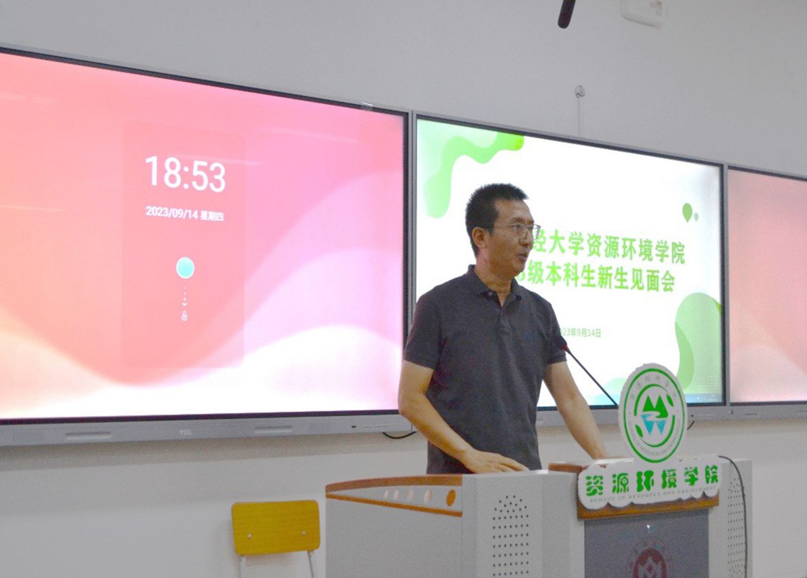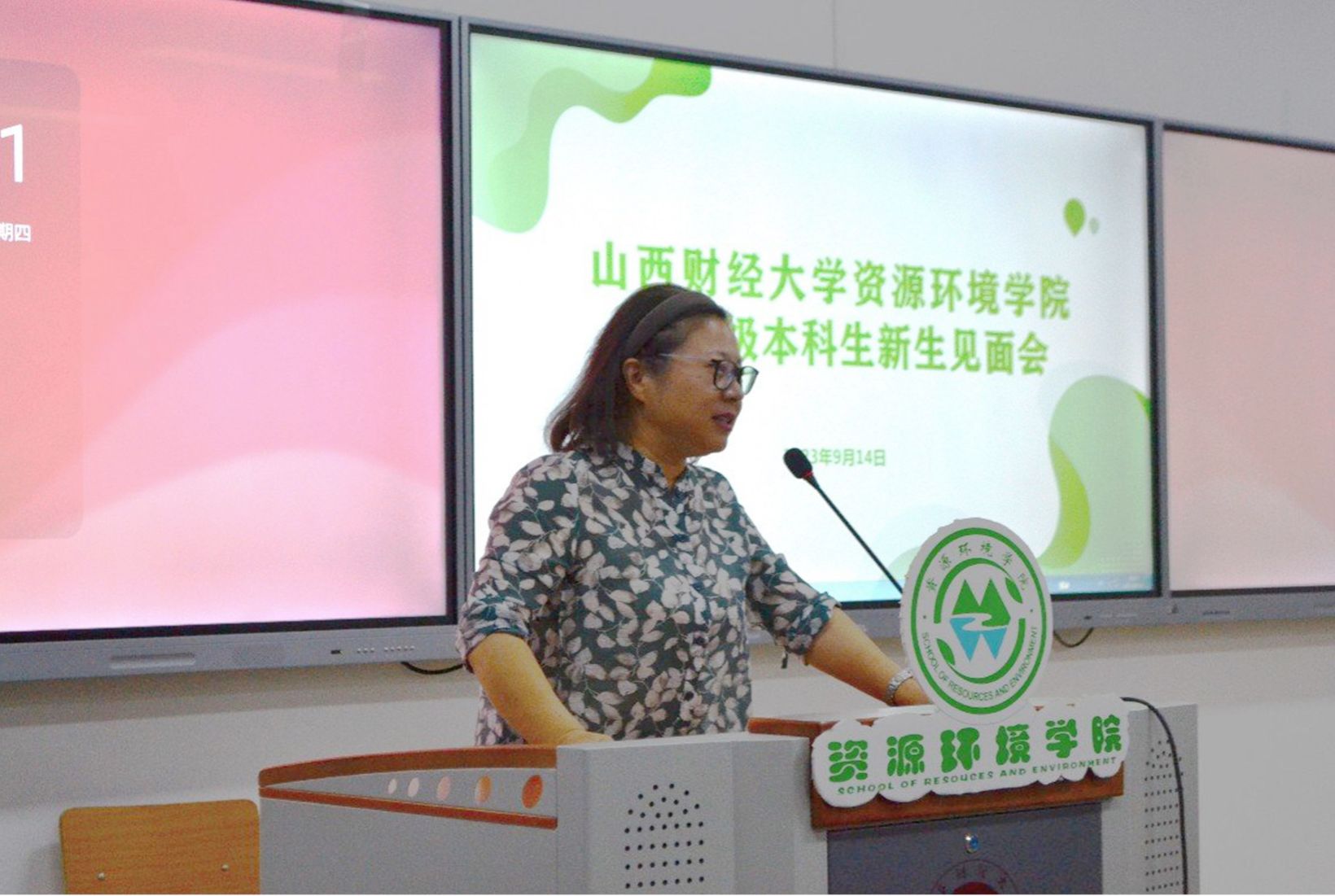 院长班凤梅致欢迎辞。她代表学院对新生们的到来表示热烈欢迎,并从学院发展、学科建设、师资队伍、人才培养等方面,全方位介绍了学院情况,讲述了地理学魅力,鼓励新生们要树立学科自信,全方位发展,在学校、学院的建设和发展中贡献力量,成为德智体美劳全面发展的山财地理人。