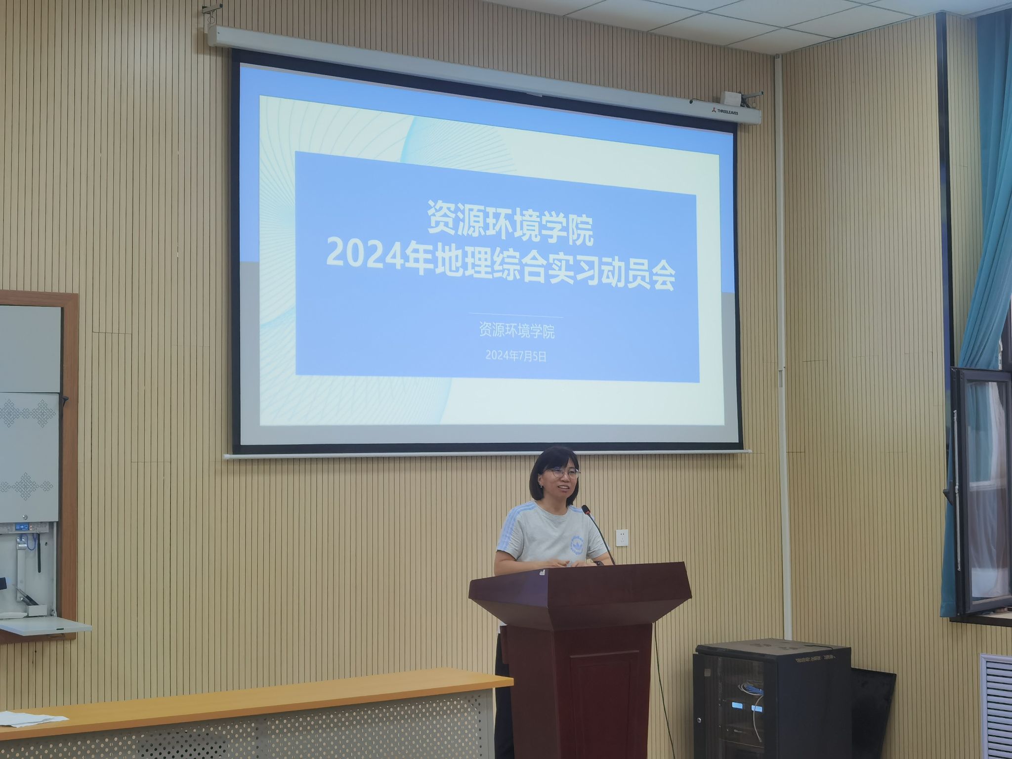 于修德楼204阶教召开了2024年地理综合实习动员会。学院院长班凤梅、副院长薛曜祖、实习带队老师申震、2022级辅导员刘丽丽及全体2022级本科生参加会议。