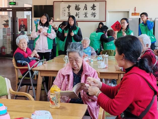 为帮助老人活动筋骨、愉悦心情,志愿者们还与老人们一同做了养生的“手指操八段锦”,现场气氛欢快,老人们学得认真,笑得开怀。
