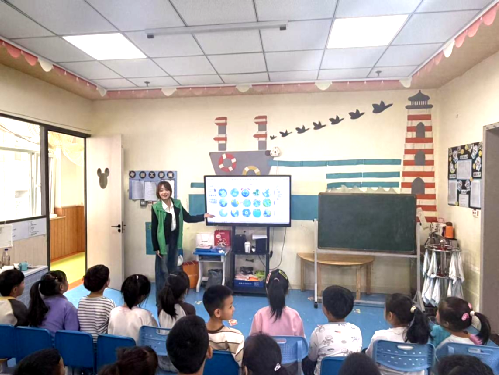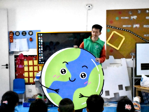 绿动志愿者服务队走进长治路一社区金泽幼儿园,开展世界地球日科普志愿行活动。以“小手拉大手”为纽带,将绿色种子播撒在社区沃土,让环保理念浸润孩童心灵,用青春力量书写新时代生态守护的青春答卷。