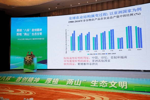 北京大学现代农学院研究员、北京大学中国农业政策研究中心副主任解伟教授作了题为“农食系统转型与可持续发展”的学术交流报告。解教授在报告中首先结合典型案例和科学数据,总结了全球农业转型的三个规律。针对阳高县农业发展,提出了针对性的战略建议,包括向区域农业向高价值农业转型,加速农业人口转移,大农小农分工不同,迎接膳食模型转型等方面。