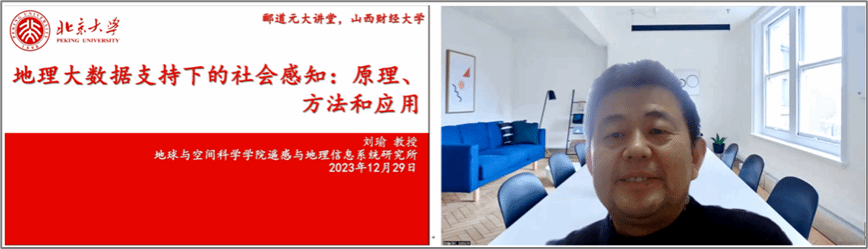 2023年12月29日下午,北京大学博雅特聘教授刘瑜受邀为郦道元大讲堂带来跨年学术盛宴。本次讲座的主题为“地理大数据支持下的社会感知:原理、方法和应用”,报告采用线上方式举办,吸引了约200名师生和学者参加了此次报告。汤姆视频